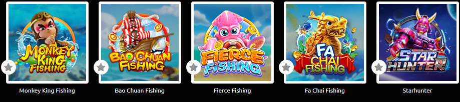 Monkey King Fishing, Bao Chuan Fishing, Fierce Fishing, Fa Chai Fishing, Starhunter.